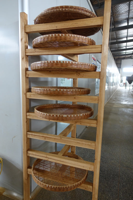 After the fresh teas are picked, the leaves are left in a cool, shaded area to slowly lose moisture. Some big leaf varietals are also sun-wilted first, which could take many hours. Most makers now use oxidation beds to wilt the tea, drastically accelerating the process and compromising the quality.